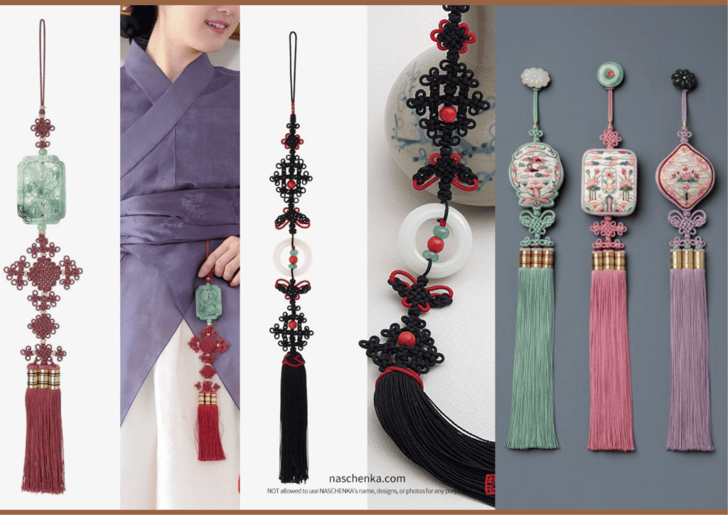 There is a photograph from the 1930s. In it, a Korean woman in hanbok stands beside a stone wall, her gaze soft, her posture elegant. But it’s not her face that draws the eye. It’s the ornament hanging from her jacket, a cascade of silk cords, intricate knots, and a tassel that catches the light. The norigae (노리개) moves slightly, as if still swaying from her breath.